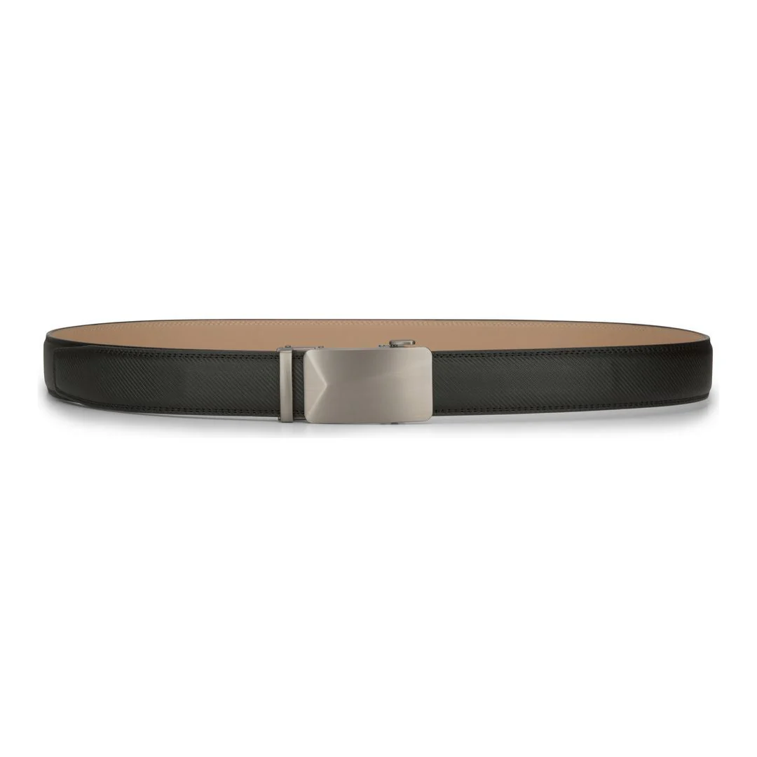 * Easy fastening track buckle, Easy To Use--No trouble of size in-between of holes! in the back of belt, there are 32 ratchet notches, it can make the micro size-adjustment of 0.25" , which can follow the variation of your waist precisely