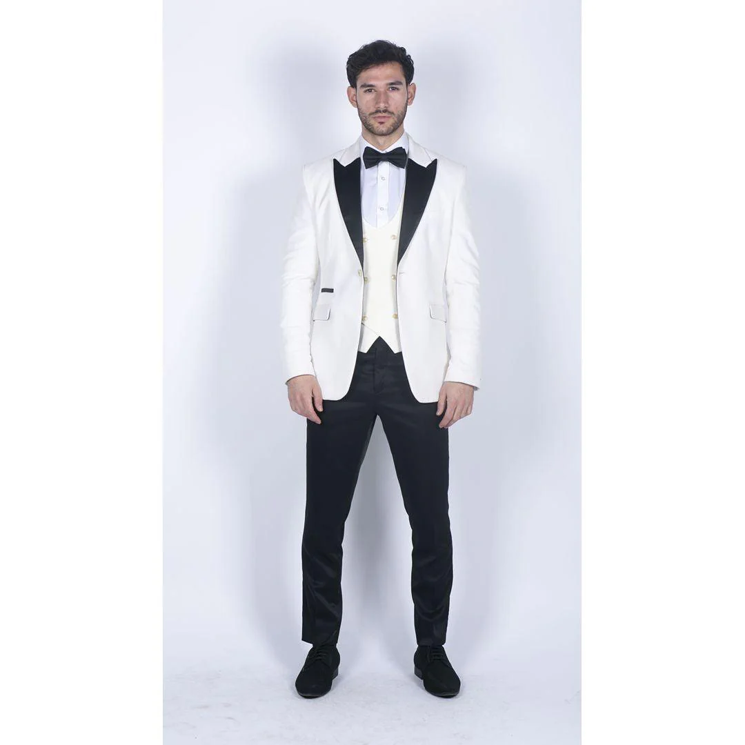* Soft Cream Velvet With Contrasting Black Satin Lapels & Matching Buttons