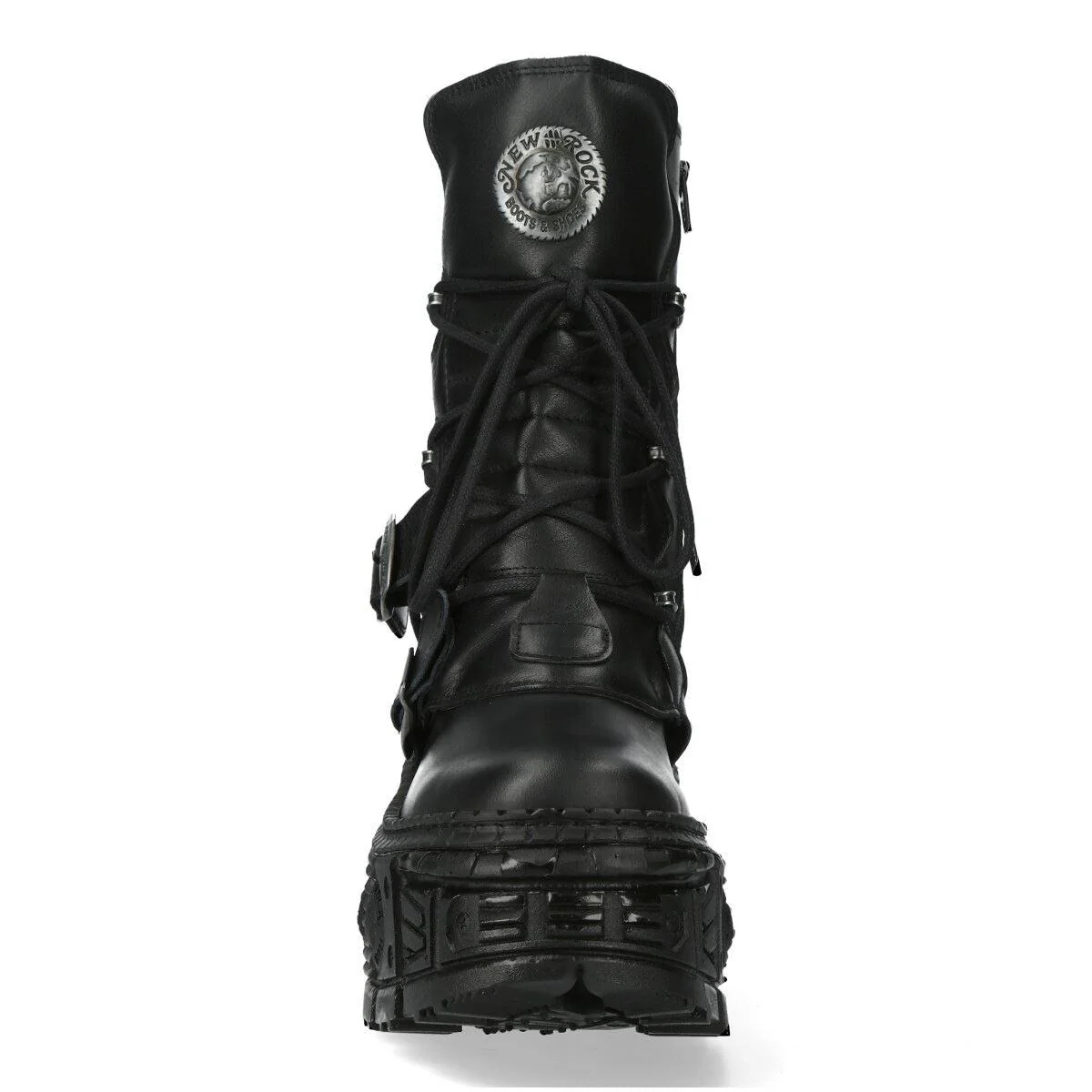 New Rock Boots Punk WALL373-S5 Metallic Black Leather Platform Gothic EMO Goth